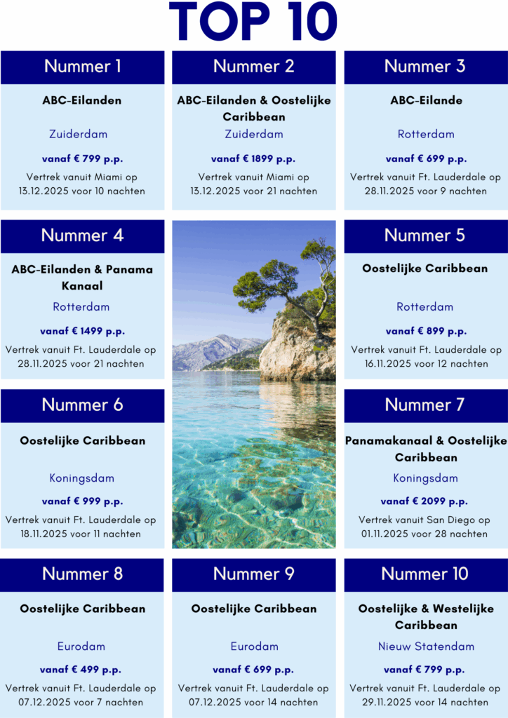 Vraag onze cruise experts naar de actuele beschikbaarheid, voorwaarden en prijzen via [email protected] of 045-541023