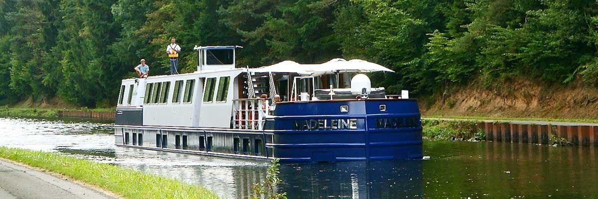 Het schip “Madeleine” vaart langs het Rijn-Marne-kanaal.