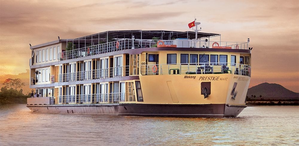 This very recent boat, which left the Saigon shipyards in 2012, offers great comfort for its passengers. Its capacity not exceeding 64 passengers allows usability throughout the cruise. The sleek and modern style seduces its guests. The large Pont Soleil is a spectacle of all times on the Vietnamese and Cambodian banks. Its shallow draft makes it possible to land on the banks of villages bordering the Mekong River.